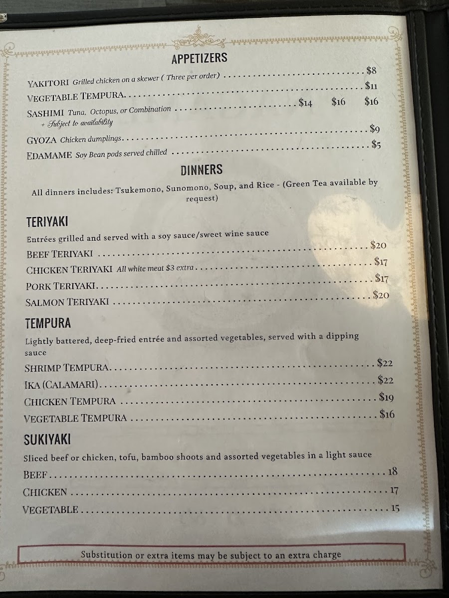 The appetizers like edamame and gyoza make for easy starters, perfect for those who enjoy light bites alongside a cold Asahi or a distinctive rice beer. Main dishes feature tempura and classic Japanese flavors prepared with care, inviting you to savor each bite at a comfortable pace. The food here fits well into everyday moments when you want something familiar yet thoughtfully crafted.